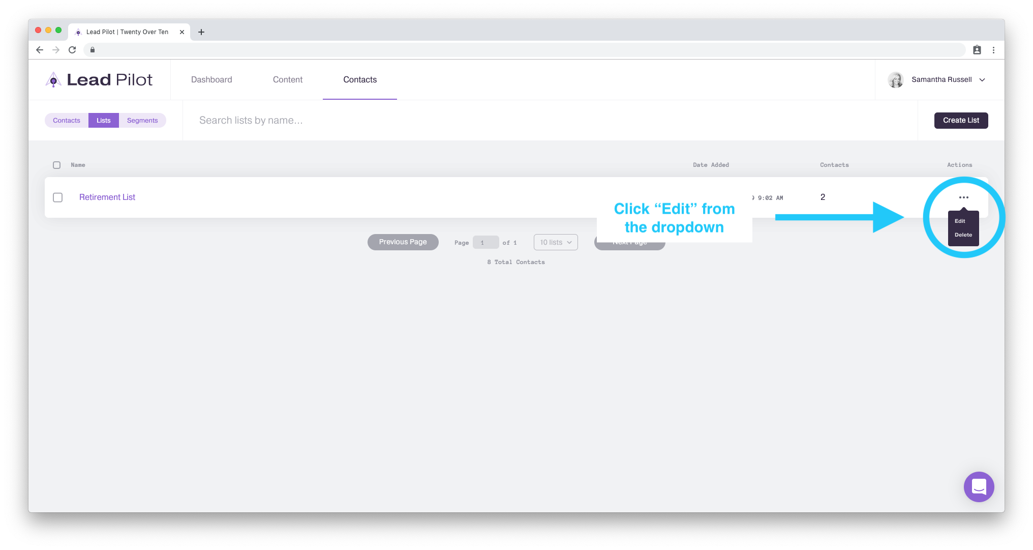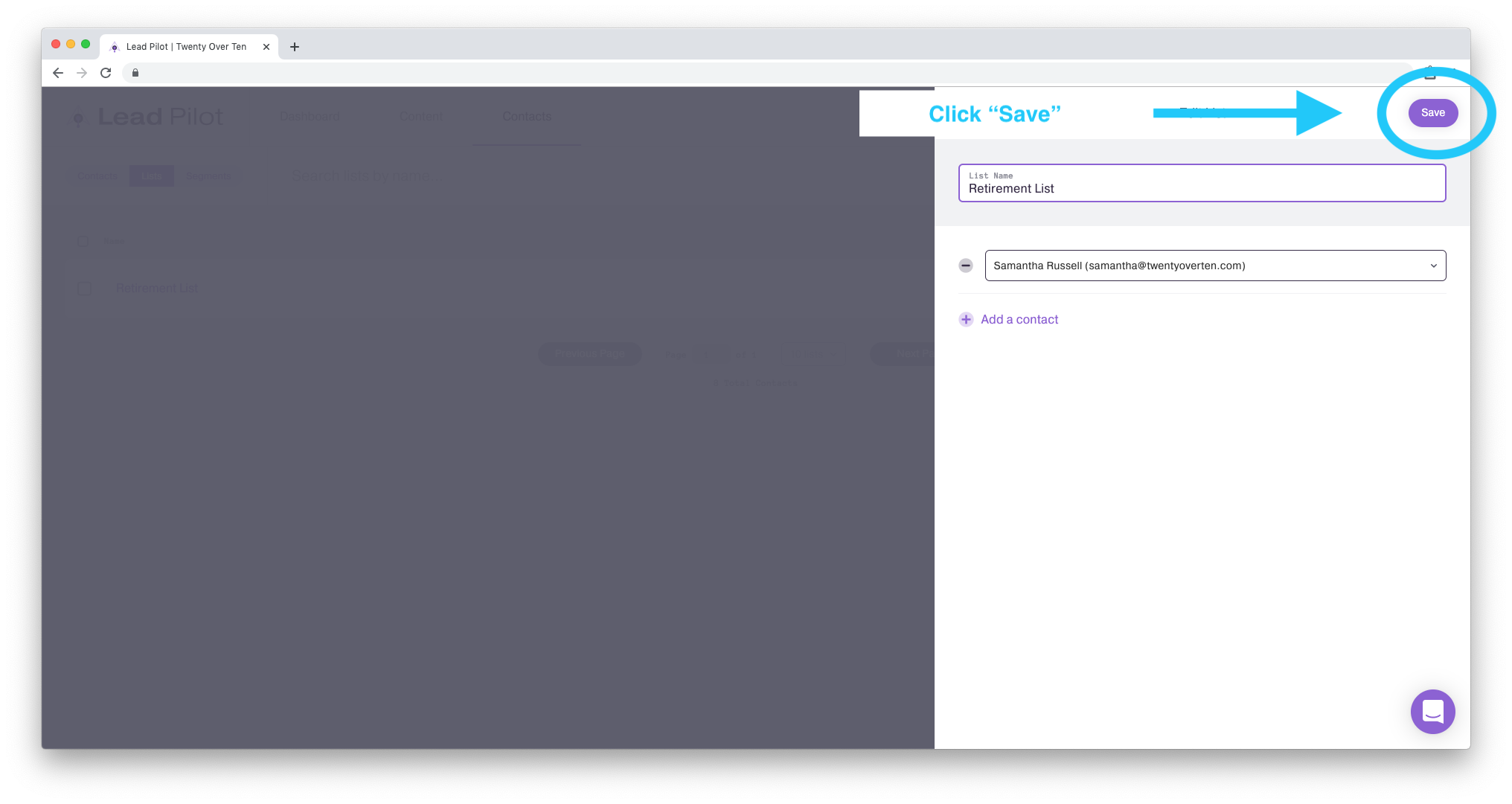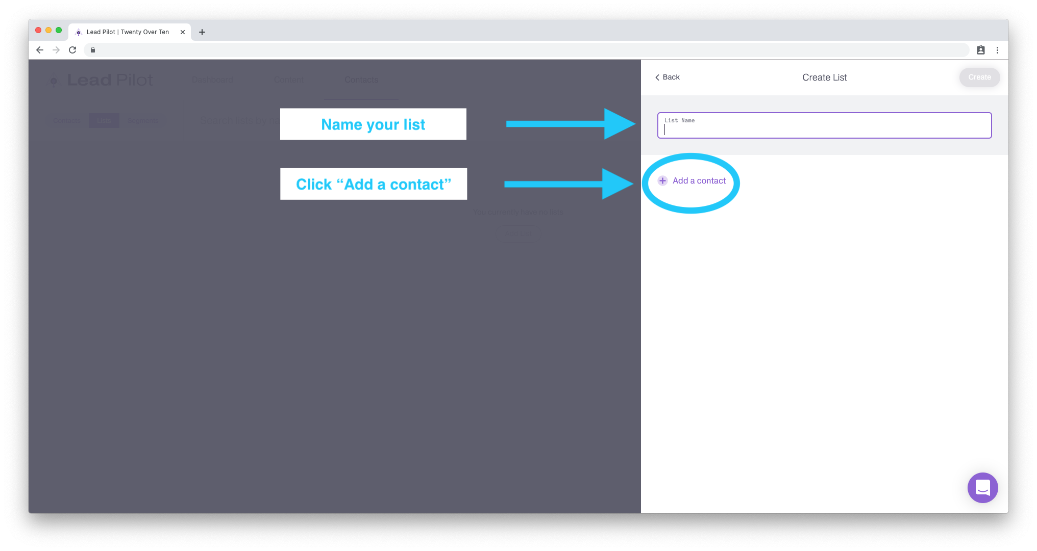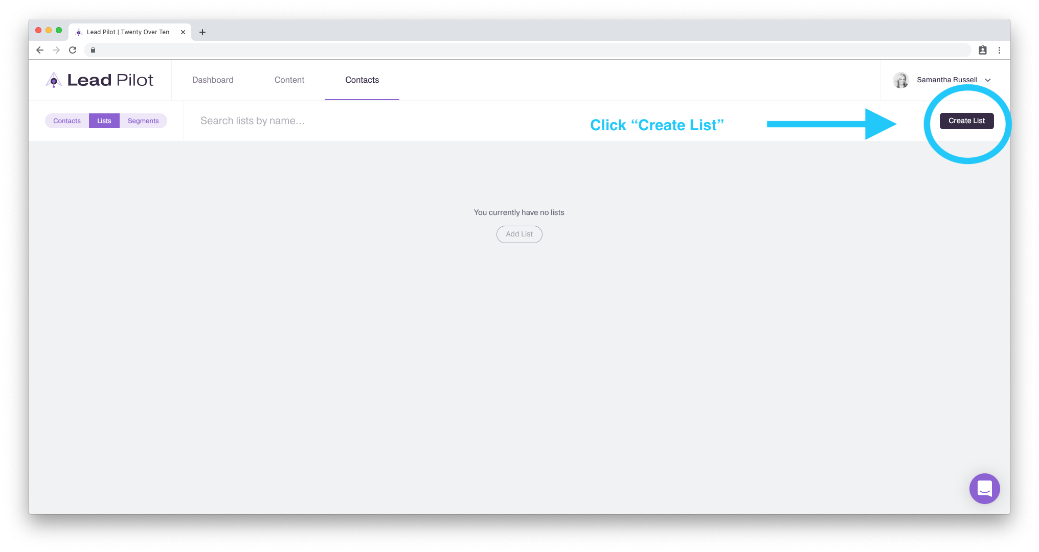 يجعل برنامج Twenty Over Ten's Lead Pilot تخصيص قوائم البريد الإلكتروني وتنظيمها أمرًا بسيطًا وسهلاً. إليك الطريقة: