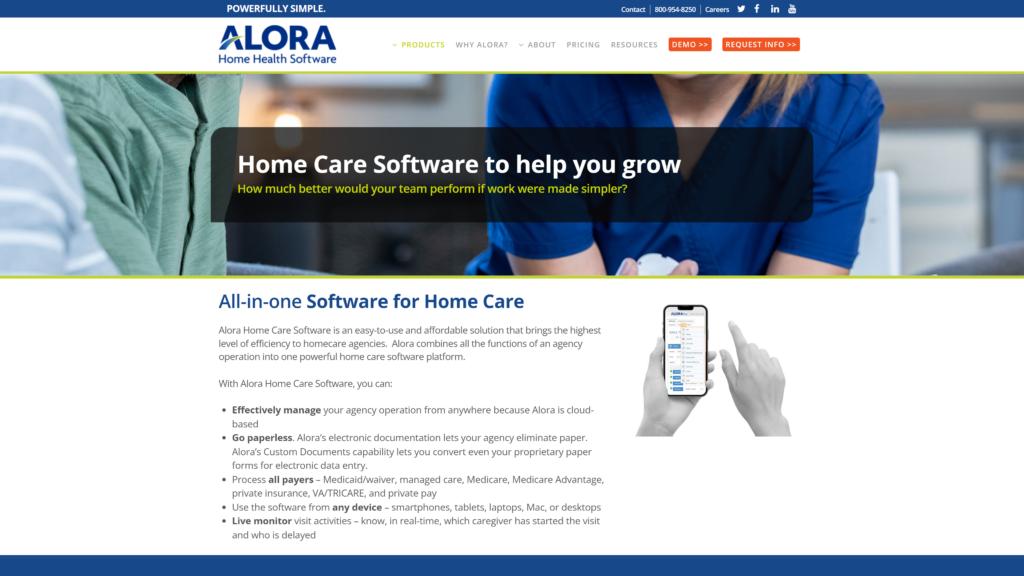 Alora Home Health عبارة عن منصة إلكترونية لإدارة السجلات الطبية (EMR) تقدم خدماتها للصحة المنزلية، والرعاية الشخصية، ودور المسنين، والواجبات الخاصة، والرعاية المنزلية للأطفال.