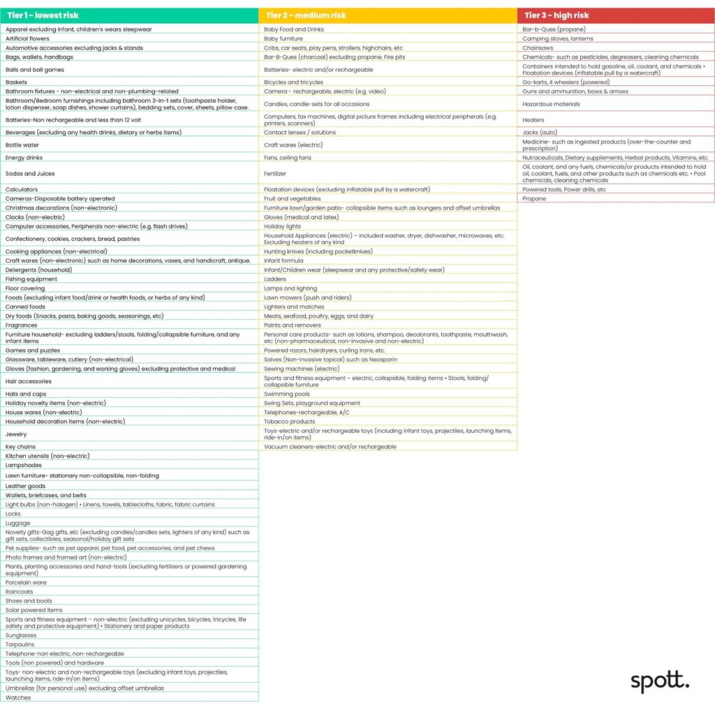 فيما يلي مجموعة من طبقات التأمين التي جمعناها من مختلف منصات التجارة الإلكترونية. تحقق من الجدول أدناه لمعرفة الفئة التي يندرج تحتها المنتج الذي تبيعه وتقييم معدل التأمين الخاص بك.