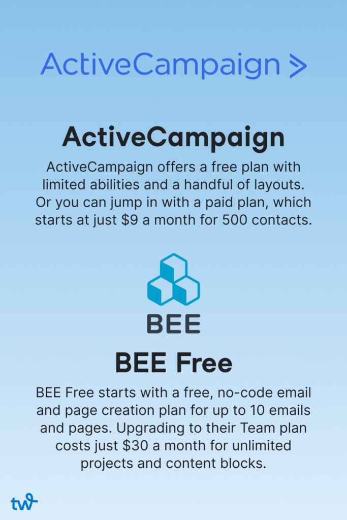 تقدم ActiveCampaign خطة مجانية ذات قدرات محدودة وحفنة من التخطيطات. أو يمكنك الدخول بخطة مدفوعة تبدأ من 9 دولارات شهريًا مقابل 500 جهة اتصال.