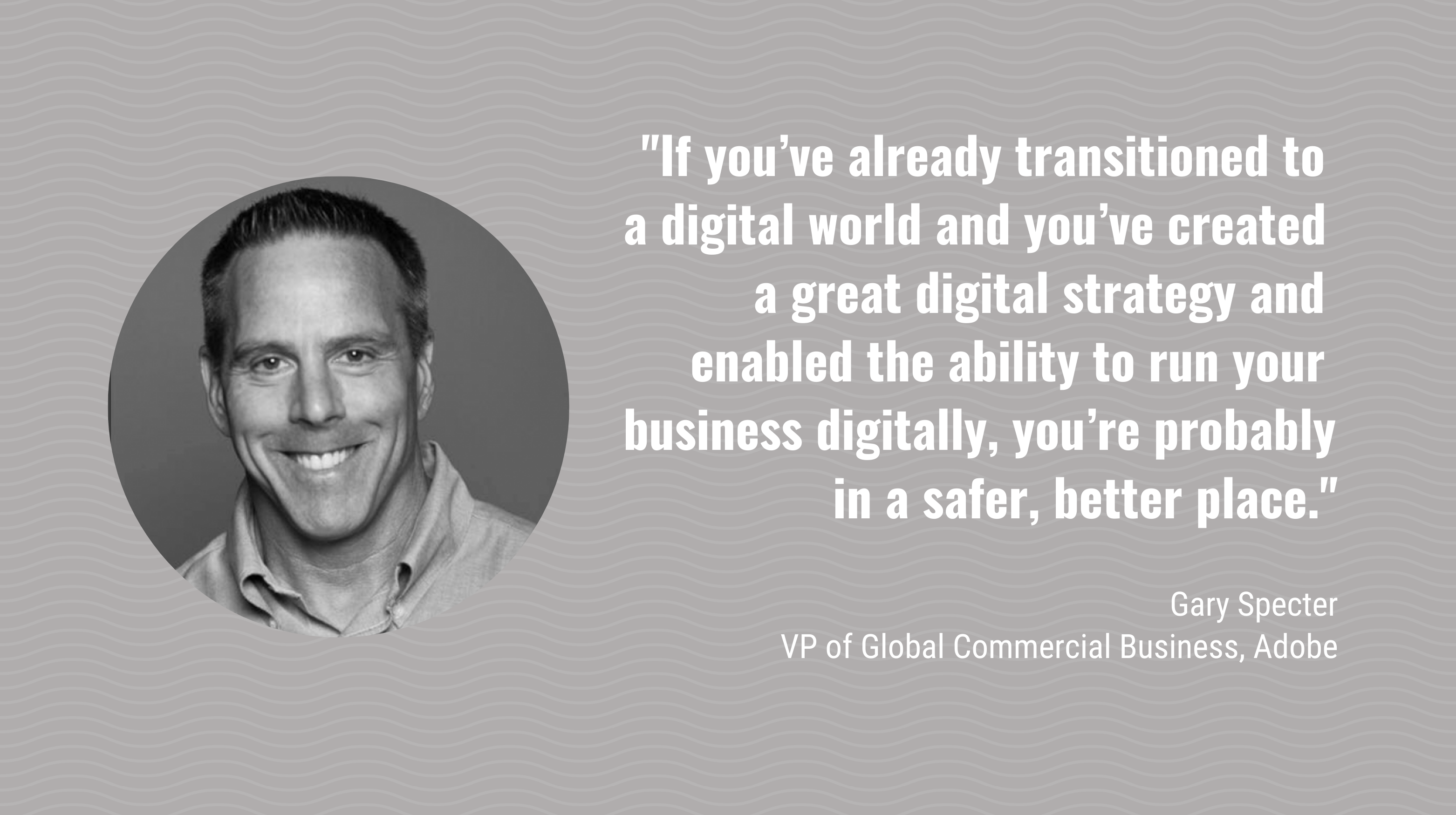في وقت سابق من هذا الأسبوع ، أتيحت لي الفرصة لإجراء محادثة مباشرة على LinkedIn مع Gary Specter ، نائب رئيس الأعمال التجارية العالمية في Adobe ، لمعرفة المزيد عن البرنامج ، والاستماع إلى أفكاره حول كيف يمكن للشركات الصغيرة والمتوسطة أن تضع نفسها بشكل أفضل لما سينتهي على الأرجح كونها بيئة أعمال مختلفة كثيرًا ومجموعة من توقعات العملاء بمجرد أن تفتح الدولة أبوابها للعمل.