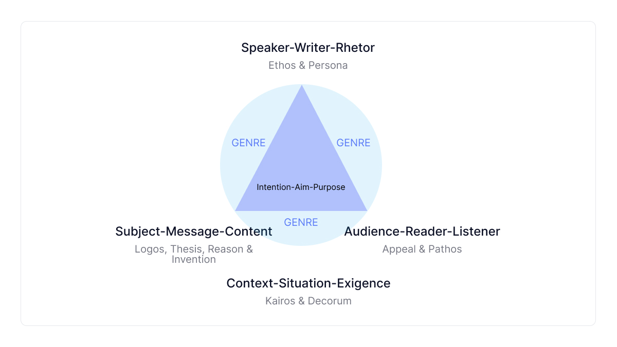 إذا استخدمت الزوايا الثلاث للمثلث البلاغي ، فستتمكن من وضع نقاطك بطريقة يفهمها ويقبلها القارئ (أو المستمع) .