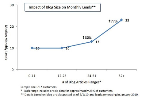 وفقًا لهذا الرسم البياني ، فإن 21 إلى 54 مدونة على موقع تجاري تساوي 30٪ زيادة في الحركة إليها.