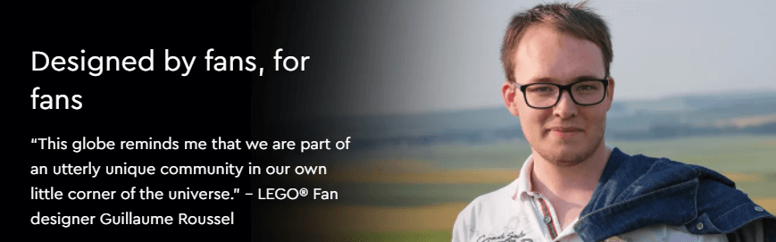 يساعد الجذب الأولي المكتسب من مجتمع المعجبين (أقل الشهادات العامة بشكل أساسي) LEGO على معرفة المجموعات التي ستحظى بشعبية لدى الجمهور. ثم تقوم الشركة بالترويج لها باستخدام شهادة من المبدع الأصلي ، في هذه الحالة ، Guillaume Roussel.