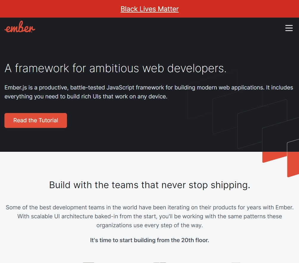 بفضل ميزاته البسيطة والفعالة - أصبح Ember.js سريعًا أحد أكثر أطر العمل مفتوحة المصدر شيوعًا بين المطورين في المجتمع لأنه يوفر تجربة مستخدم سلسة بغض النظر عن المهمة التي تقوم بها على موقعك أو مشروع التطبيق الخاص بك مع نهج سهل لكل شيء بدءًا من إنشاء تطبيقات غنية بالميزات وصولاً إلى تدفقات عمل تطوير الويب من جانب العميل. يعتبر العمل مع Ember تجربة "مضمنة بالبطاريات". ستحصل على جميع الأدوات اللازمة لتطوير واجهات المستخدم التي تعمل على أي جهاز فور إخراجه من الصندوق ، بما في ذلك عمليات إعادة البناء السريعة وإعادة التحميل التلقائي لمساعدتك على البقاء منتِجًا في بيئتك دون إضاعة الوقت في الانتظار أو مجالسة الأطفال حتى لا تخطئ فوق. مع إمكانات التطوير المضمنة مثل هذه الأشياء ، يكون الأمر سهلاً بدرجة كافية.