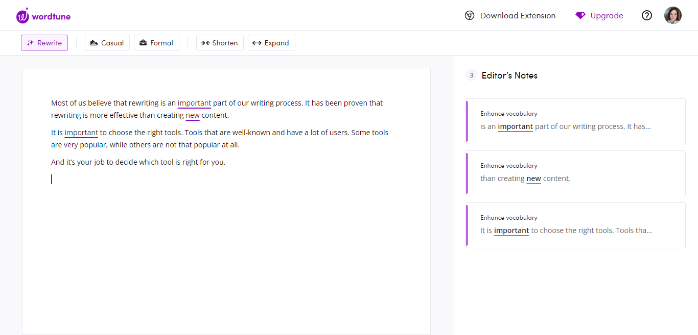 كما هو الحال مع Wordtune ، لا تحتاج أيضًا إلى تنزيل ملحق لاستخدامه.