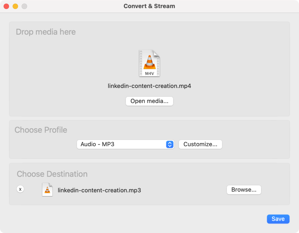 حدد ملف تعريف Audio MP3 ، وانقر فوق Save As File ، ثم فوق Browse لتحديد المجلد الذي تريد حفظ ملف الصوت فيه.