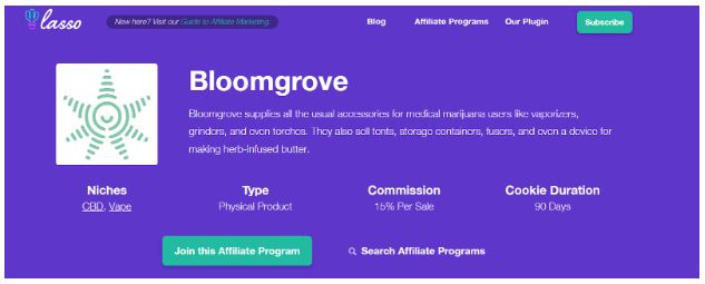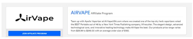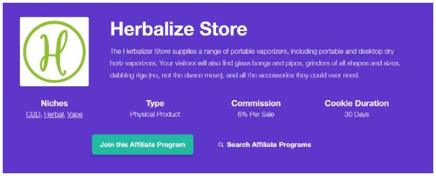 Das Partnerprogramm wird auf ihrer Website gehostet, mit Programmen, die perfekt zu Cannabis- und Tabak-bezogenen Blogs und Websites passen.