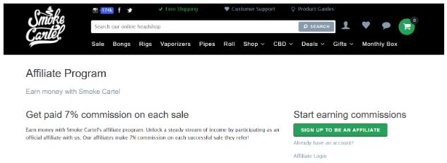 Mit Smoke Cartel können Sie satte 7 % bis 12 % Provision pro Verkauf erhalten.
