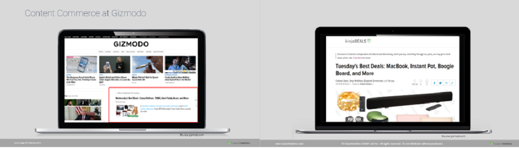 Als Beispiel können wir uns das amerikanische Vergleichsportal Gizmodo ansehen. Gizmodo generiert 25 % seines Umsatzes mit Inhalten, bei einer Conversion-Rate von 16 % pro Produkt.