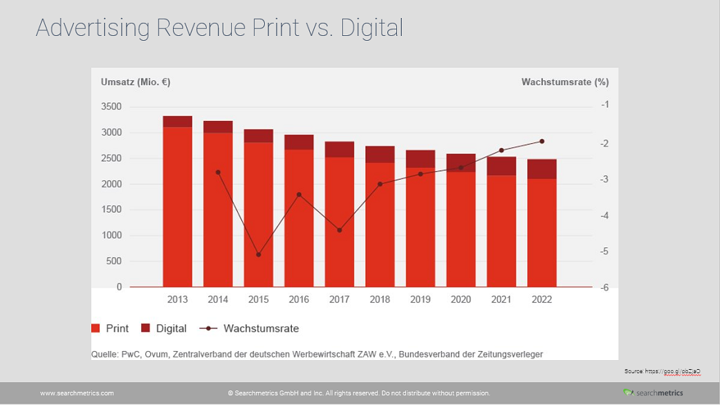 Ab einem bestimmten Punkt wurden Zeitungen größtenteils digital und Poster und Broschüren wurden zu Bannern und Pop-ups. Display-Marketing war geboren! Heutzutage erzielt der deutsche Verlagsriese Axel Springer immer noch Einnahmen mit Werbung, aber nicht mit Display-Anzeigen. Gewinn generiert der Verlag über Online-Unternehmen wie das Vergleichsportal Idealo. Die digitale Transformation von Inhalten ist schon lange eine treibende Kraft – den klassischen Printmedien hingegen geht seit einiger Zeit das Benzin aus.
