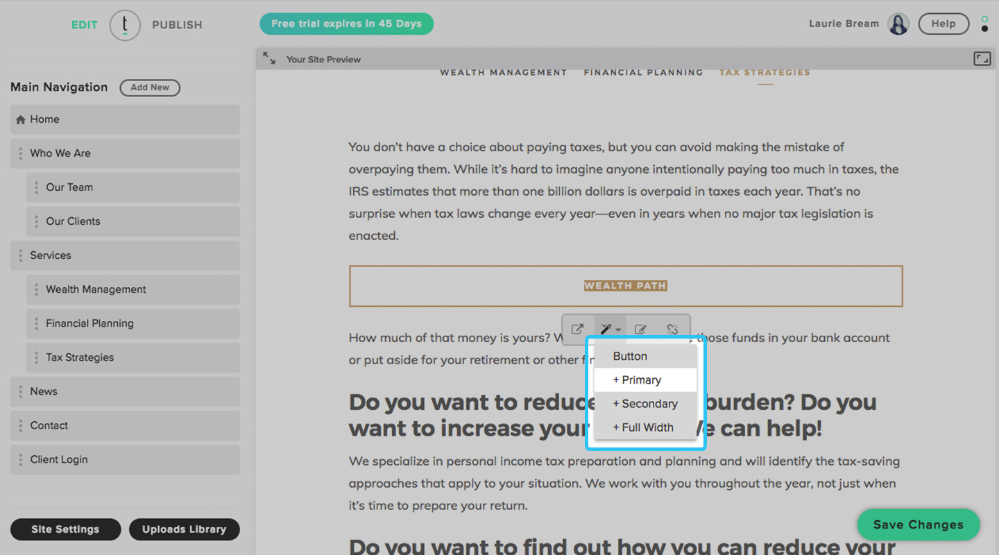 Ein Call-to-Action ist ein so großer Teil Ihrer Website und es ist entscheidend, dass Sie Ihren Besuchern einen nächsten Schritt geben. Dadurch erhöht eine Aktion, die jemand auf Ihrer Website durchführen kann, Ihren digitalen Marketingaufwand noch mehr. Handlungsaufforderungen gibt es in vielen verschiedenen Formen, Größen und Formen, aber wir glauben, dass sie am besten funktionieren, wenn sie als Schaltflächen oder auf andere optisch ansprechende Weise gestaltet werden. Innerhalb der Twenty Over Ten-Plattform machen wir es Beratern leicht, Links und Schaltflächen zu ihren Websites hinzuzufügen.
