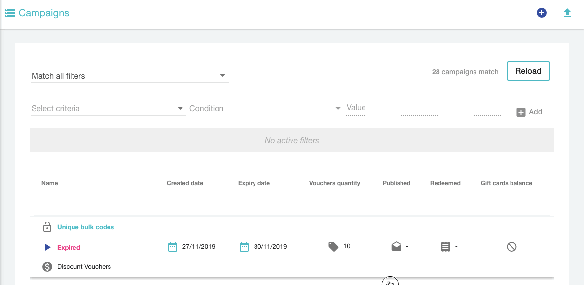 Wir werden Guthaben für Geschenkkarten auswählen und hier fordert Voucherify Sie auf, zu definieren, welche Karte Sie im Sinn haben. Wenn Sie noch keine Geschenkkartenkampagnen erstellt haben, machen Sie sich keine Sorgen, hier können Sie auch vordefinierte Geschenkkartenkampagnen verwenden , die standardmäßig im System verfügbar sind.