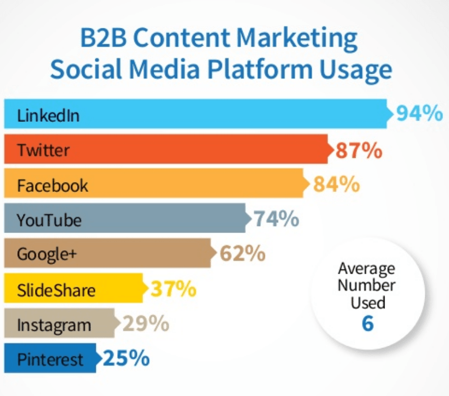 Vermarkter nutzen durchschnittlich sechs Social-Media-Plattformen, um ihre Markenstrategie zu fokussieren. Dazu gehören: LinkedIn, Twitter, Facebook, Youtube, Google+, SlideShare, Instagram, Pinterest
