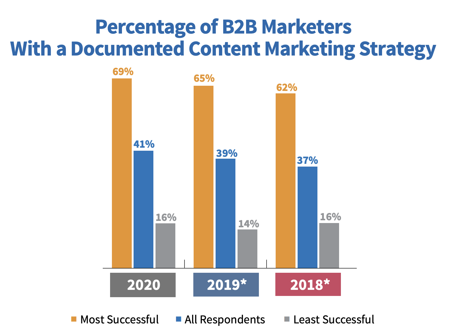 69 % der erfolgreichen B2B-Vermarkter haben eine dokumentierte Content-Strategie (Content Marketing Institute, 2020)
