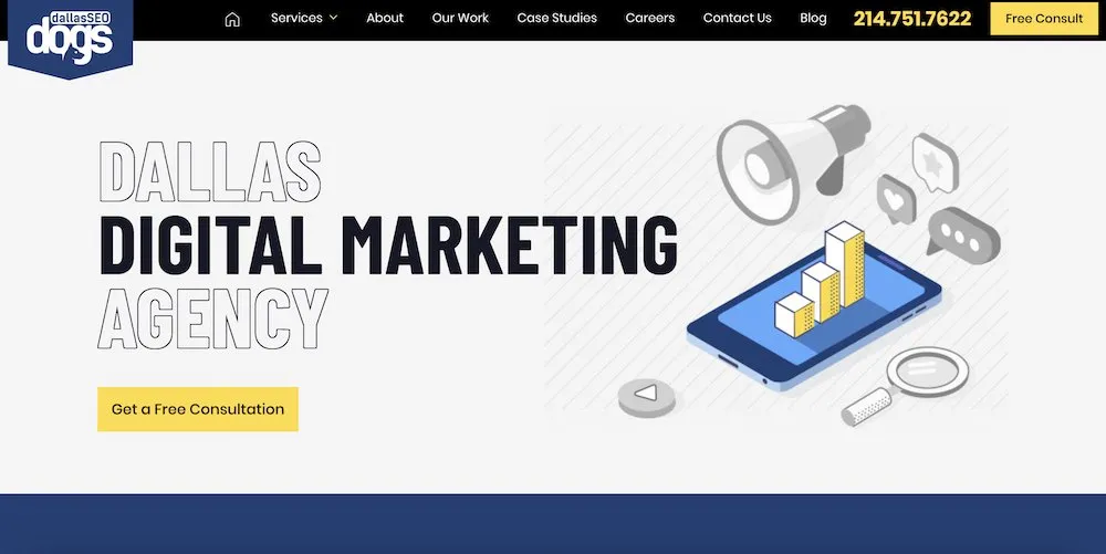Dallas SEO Dogs ist eine der besten Agenturen für digitales Marketing. Sie bieten eine breite Palette von Marketingdiensten für Unternehmen jeder Größe, einschließlich einer vollständigen Suite von Content-Marketing-Diensten. Wenn Sie möchten, dass Ihre Website-Texte für SEO optimiert werden, Blog-Posts recherchiert und geschrieben werden müssen oder andere gängige Inhaltsdienste für Ihre Marke ausgeführt werden müssen, ist Dallas SEO Dogs möglicherweise eine gute Wahl für Sie.