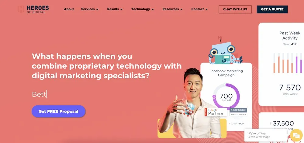Heroes of Digital ist eine führende Agentur für digitales Marketing, die proprietäre Technologie mit Spezialisten für digitales Marketing kombiniert, um Kunden dabei zu helfen, Ergebnisse zu erzielen. Heroes of Digital ist die einzige digitale Agentur in Singapur, die proprietäre Technologien entwickelt hat, um KMU dabei zu helfen, bessere digitale Marketingergebnisse zu erzielen. Sie behaupten, Kampagnen in 94 % der Fälle übertroffen zu haben, was beeindruckend ist.