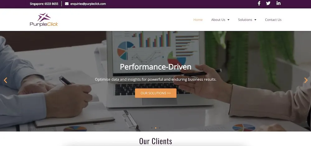 PurpleClick wurde 2006 gegründet. Seit seiner Gründung hat es über 30 Branchenauszeichnungen erhalten, darunter die Auszeichnung als „Suchmarketing-Agentur des Jahres“. Mit über 15.000 früheren und gegenwärtigen Kunden in Singapur und im Ausland, von Start-ups bis hin zu großen Unternehmen, stehen die Chancen gut, dass sie Ihnen unabhängig von Ihrem Geschäftsmodell oder Ihren Anforderungen an digitales Marketing helfen können.