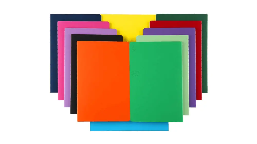Sie erhalten 12 Kompositionsbücher in verschiedenen Farben mit jeweils 100 Blatt Papier.