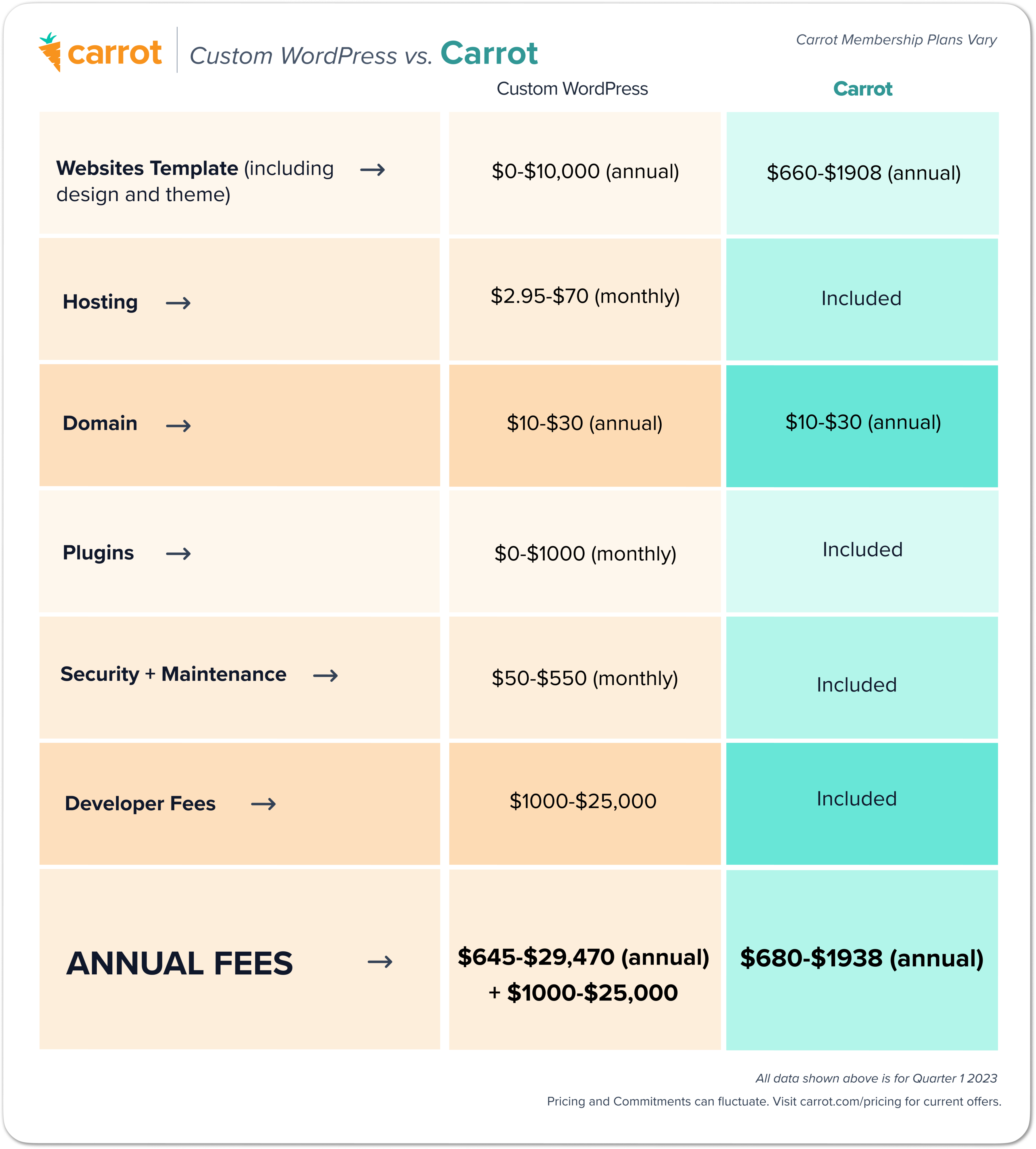 Karotten- und benutzerdefinierte WordPress-Sites sind beliebt zum Erstellen und Hosten einer Website, bieten jedoch unterschiedliche Funktionen, erweiterte Tools und Preispläne. Carrot ist bekannt für seine benutzerfreundliche Oberfläche, Leistung und erschwinglichen Preise, während WordPress eine breitere Palette von Themenoptionen zum Erstellen einer Website bietet.