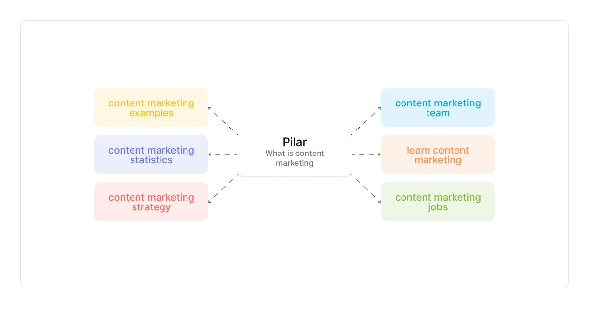 Das sind Blog-Artikel, die um eine Pilar-Seite versammelt sind – das Hauptthema mit Unterthemen-Clustern .