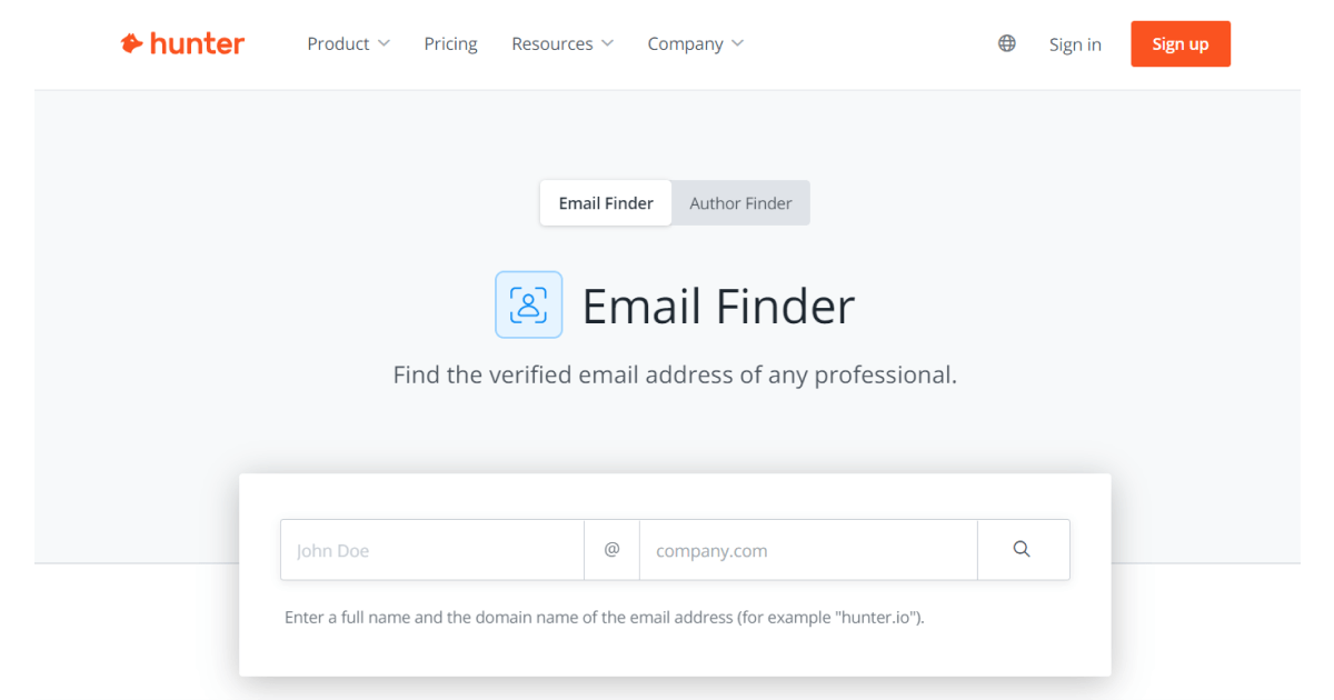 Umgekehrt, wenn Sie nicht darauf warten möchten, dass Abonnenten in Ihre E-Mail-Liste einsteigen, können Sie Tools wie Hunter.io implementieren, um Informationen über Ihre potenziellen Leads zu verfolgen und sie zuerst zu erreichen.
