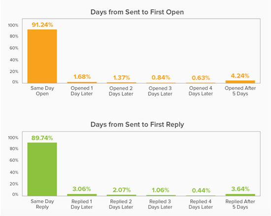 Wie sicher? Ungefähr 90 % der Empfänger öffnen und antworten – wenn sie antworten werden – an dem Tag, an dem sie eine E-Mail erhalten.