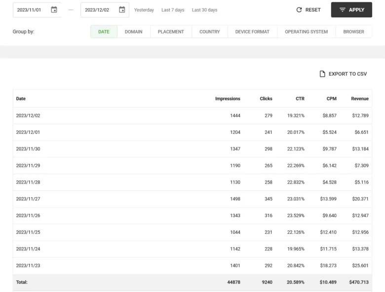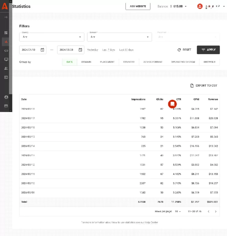 Adsterra bietet eine Vielzahl von Anzeigenformaten. Ich selbst nutze Social Bar und Popunder, weil sie gut zu meiner Nische passen, nämlich Unterhaltung und Biografie. Wenn ein Anzeigenformat für Sie nicht gut funktioniert, versuchen Sie es mit einem anderen: Sie werden auf jeden Fall das Passende finden.