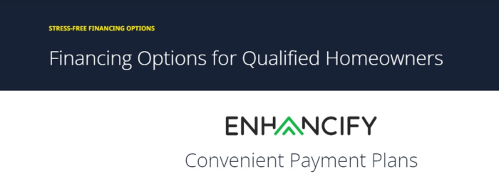 - Financing : Offering easy financing options and payment plans for homeowners looking to make expensive repairs and upgrades can attract more customers who aren't able to afford the full cost of a product or service upfront.