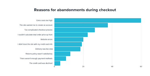 Außerdem möchten Sie vielleicht auch eine kostenlose Lieferung nach Hause anbieten, um Ihre Konversionsrate zu erhöhen. Sehen Sie sich diese Gründe für das Verlassen des Einkaufswagens an und überlegen Sie, wie Sie das Kundenerlebnis in Ihrem E-Commerce-Shop verbessern können.