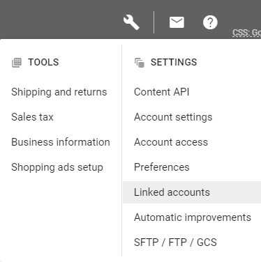 Nachdem Sie Ihre Google Ads- und Google Merchant Center-Konten erstellt haben, klicken Sie im Google Merchant Center oben auf die Schaltfläche „Einstellungen“ (Schraubenschlüssel) und wählen Sie „Verknüpfte Konten“ aus, wie in der Abbildung unten gezeigt. Klicken Sie anschließend neben der korrekten Google Ads-Kundennummer auf die Schaltfläche „Verknüpfen“. Wenn Sie diesen Schritt abgeschlossen haben, gehen Sie zurück zu Google Ads, klicken Sie auf „Tools“, wählen Sie „Verknüpfte Konten“ und genehmigen Sie die Anfrage. Ihre Google Merchant Center- und Google Ads-Konten sollten jetzt verknüpft sein.