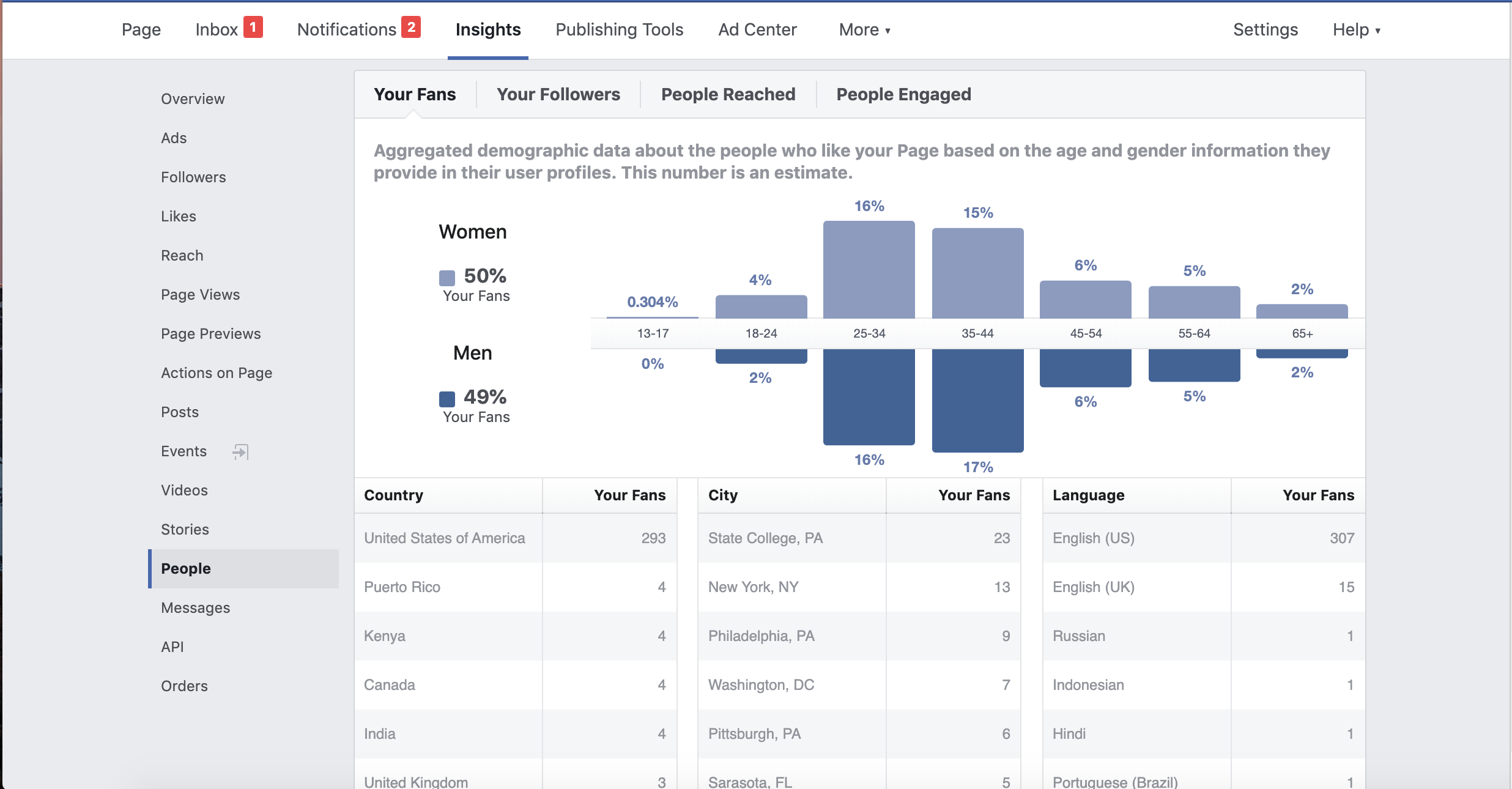 Es ist auch hilfreich, sich Ihre Social-Media-Analysen anzusehen, um festzustellen, welche Social-Media-Plattformen Ihr Nischenpublikum nutzt und auf denen es die meiste Zeit verbringt. Unten ist die Facebook-Analyse von Twenty Over Ten. Ihre Analysen können Ihnen dabei helfen, das Alter Ihrer Follower sowie deren Engagement für Ihre Inhalte zu bestimmen. Sobald Sie sich die Analysen Ihrer verschiedenen Social-Media-Plattformen angesehen haben, können Sie entschlüsseln, wo sich Ihr Publikum am häufigsten aufhält. Auf diese Weise können Sie feststellen, welche Plattformen für Ihr Unternehmen optimal sind.