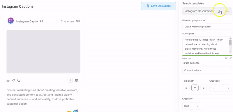 TextCortex kann Ihnen helfen, den Prozess des Schreibens von Bildunterschriften für soziale Medien zu beschleunigen.