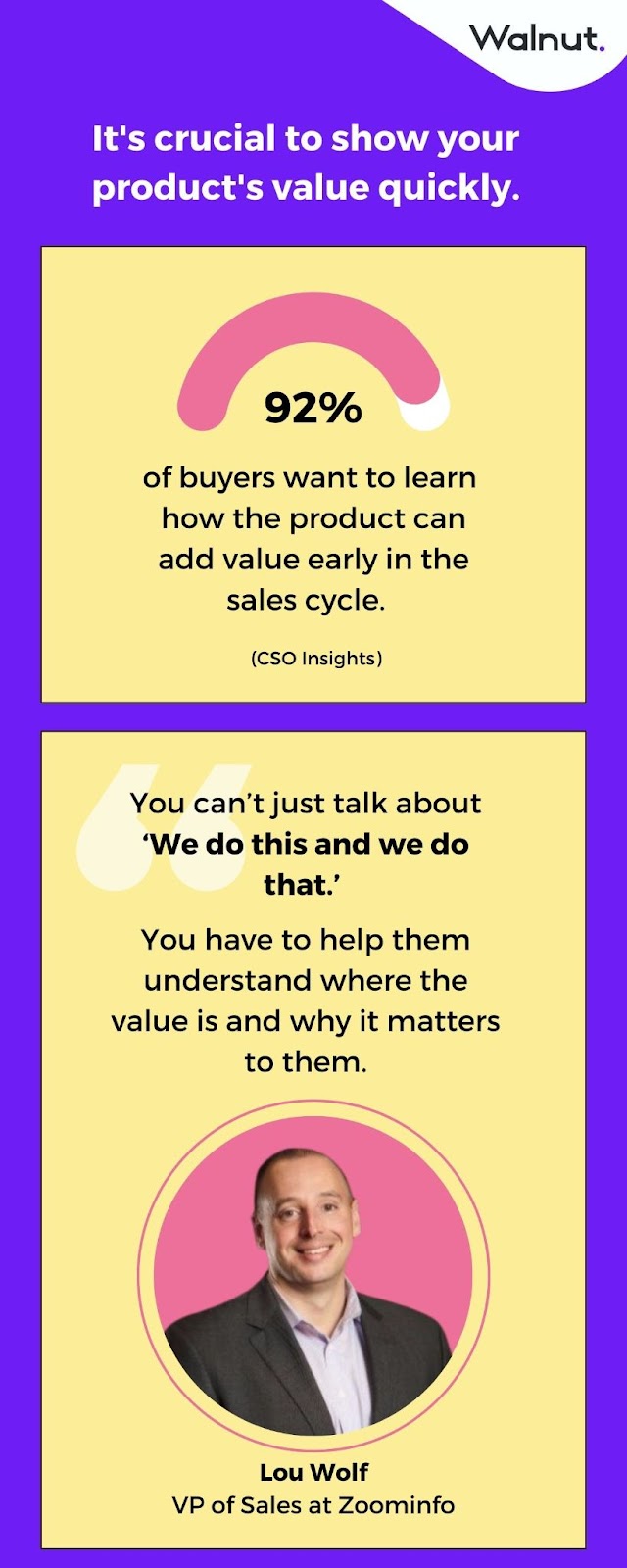 Die frühzeitige Präsentation des Werts Ihres Produkts sollte ein integraler Bestandteil Ihres Verkaufsprozesses sein. Bedenken Sie: