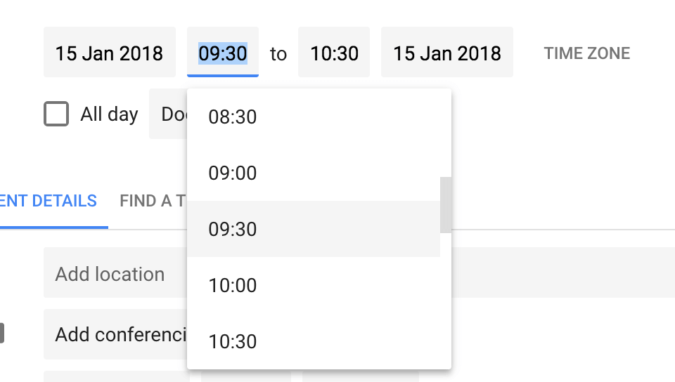 Besprechungen werden in der Regel in halbstündigen oder einstündigen Slots angesetzt. Ich denke, ein wichtiger Grund dafür ist, dass 30 Minuten die Standardeinstellung in Google Kalender sind, obwohl Sie es überschreiben können.
