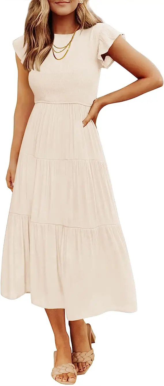 ZESICA Damen-Sommerkleid, lässig, mit Flatterärmeln, gestuft, Midikleid