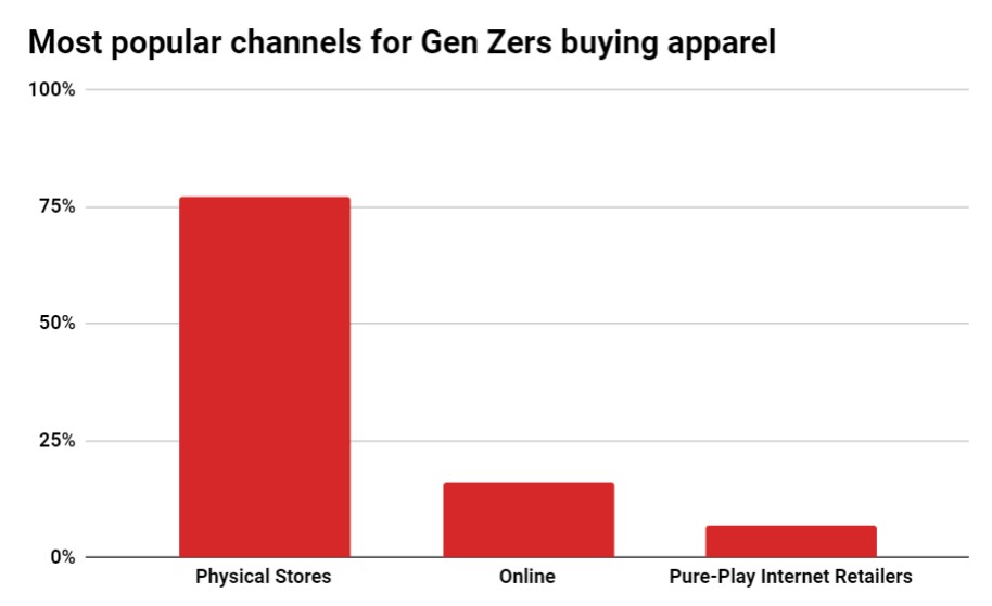 Das ist besonders wichtig, da ein Großteil der Einkäufe der Generation immer noch in Geschäften stattfindet. Laut einer Studie des International Council of Shopping Centers, die per E-Mail an Retail Dive gesendet wurde, machten 95 % der Gen Zs innerhalb von drei Monaten einen Besuch in einem Einkaufszentrum und 75 % sagen, dass das Einkaufen in physischen Geschäften eine bessere Erfahrung ist als das Online-Shopping .
