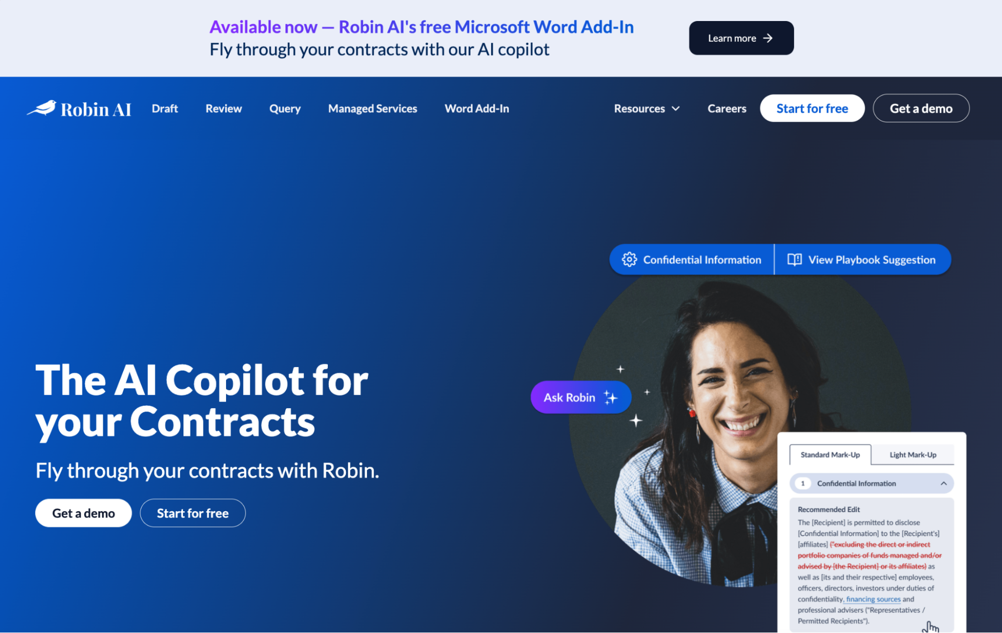 Precios: para obtener información sobre los precios de Robin AI, deberá reservar una demostración.