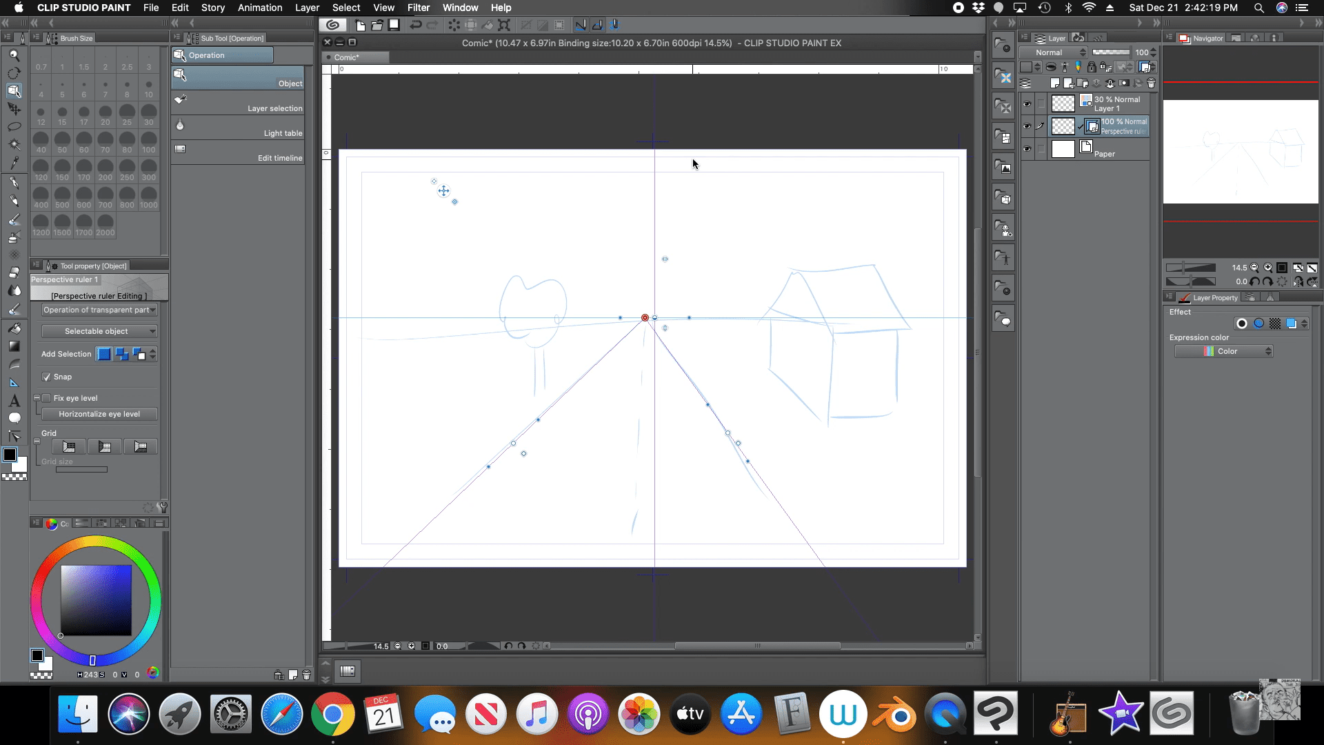 - Reglas avanzadas: dibuje líneas y formas complejas con las sólidas reglas de perspectiva de Clip Studio Paint.
