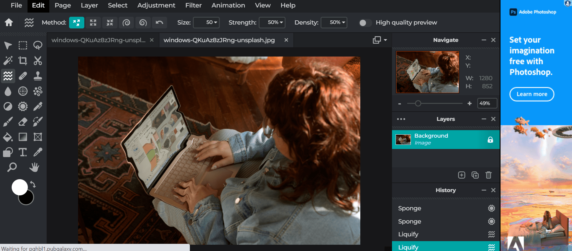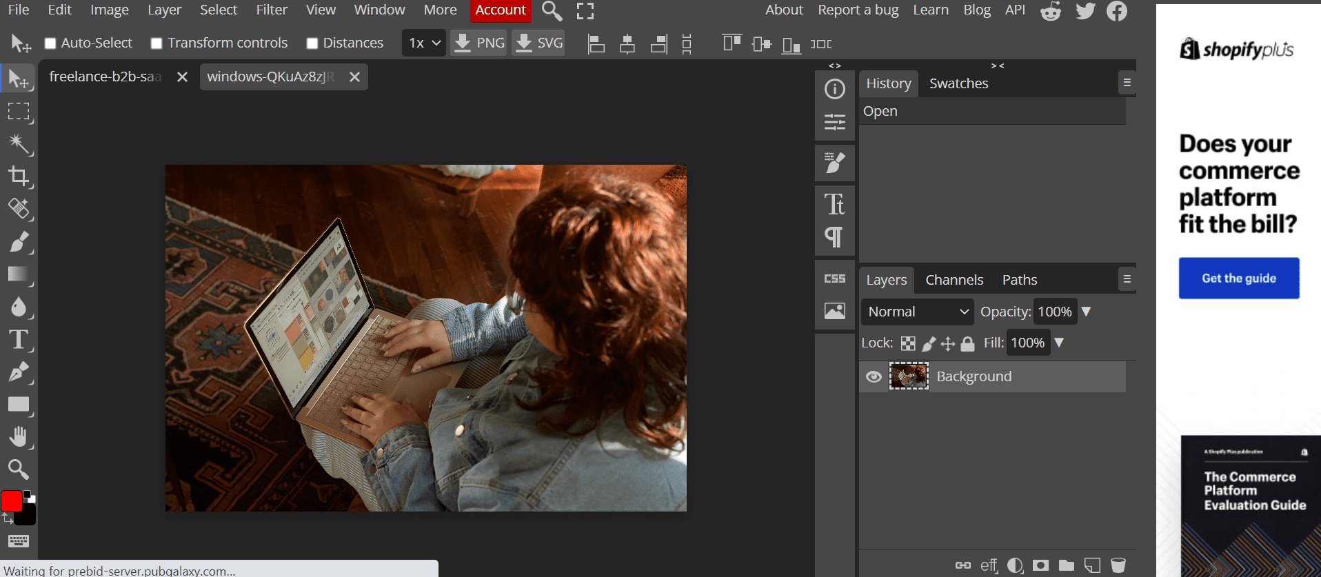 Photopea es una alternativa gratuita a Photoshop basada en navegador .