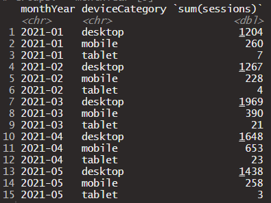 data %>% group_by(c(monthYear, deviceCategory) %>% summarise(sum(sessions))