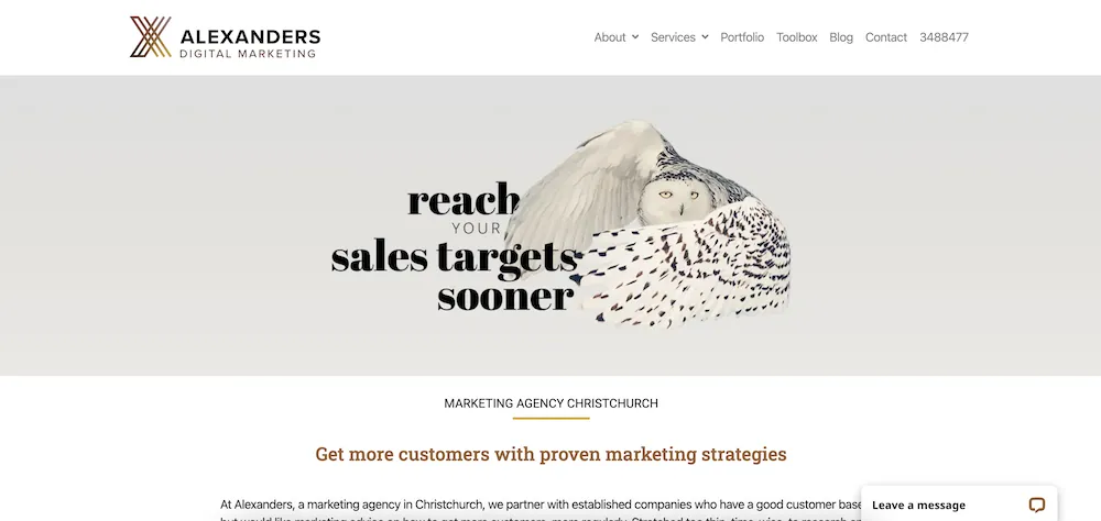Alexanders es una agencia de marketing de Christchurch que se asocia con empresas establecidas que ya tienen una buena base de clientes y requieren asistencia de marketing para crecer y conseguir más clientes con regularidad. Por lo tanto, Alexanders puede no ser la mejor opción si es una empresa nueva, pero si está más establecido, pueden ayudarlo con su comercialización. El equipo de Alexanders tiene un amplio conjunto de habilidades, lo que significa que pueden ayudar con todo, desde SEO en el sitio hasta Google Ads, redes sociales y muchos otros servicios de marketing. Incluso ofrecen estrategia de marketing y consultoría. En general, Alexanders parece una gran empresa para trabajar como una marca establecida.