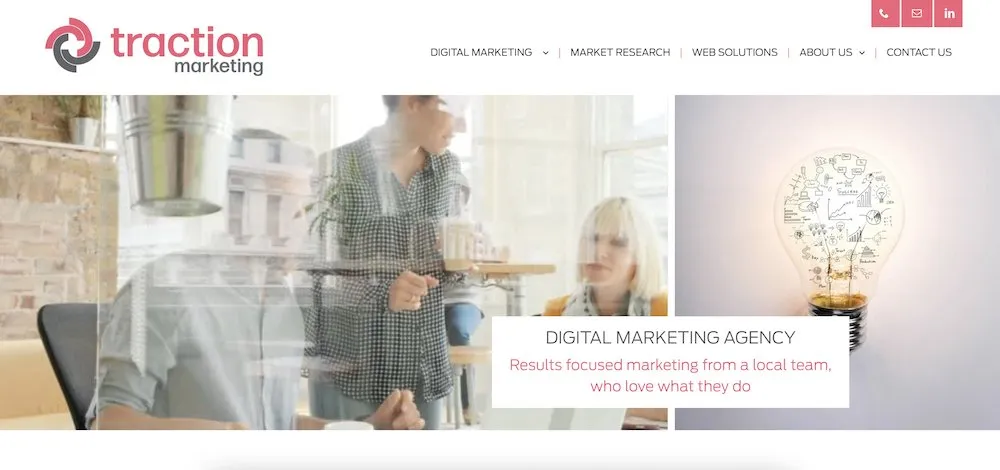 Traction Marketing es una agencia de marketing digital de servicio completo que puede ayudar a cumplir con un único servicio de marketing o crear soluciones de marketing totalmente subcontratadas para usted. El equipo de Traction Marketing está formado por expertos especialistas basados en datos que se centran mucho en la investigación y la obtención de resultados. El equipo de Traction ayuda a las empresas a crecer a través de diversos servicios de marketing, incluido el diseño y desarrollo de sitios web, redacción y generación de contenido, SEO, desarrollo de aplicaciones móviles, Google Ads e investigación de mercado. Con una fuerte creencia en construir relaciones y conectarse con los clientes antes de hacer negocios, el equipo de Traction Marketing es un gran grupo que se enorgullece de obtener resultados para los clientes y construir relaciones a largo plazo.