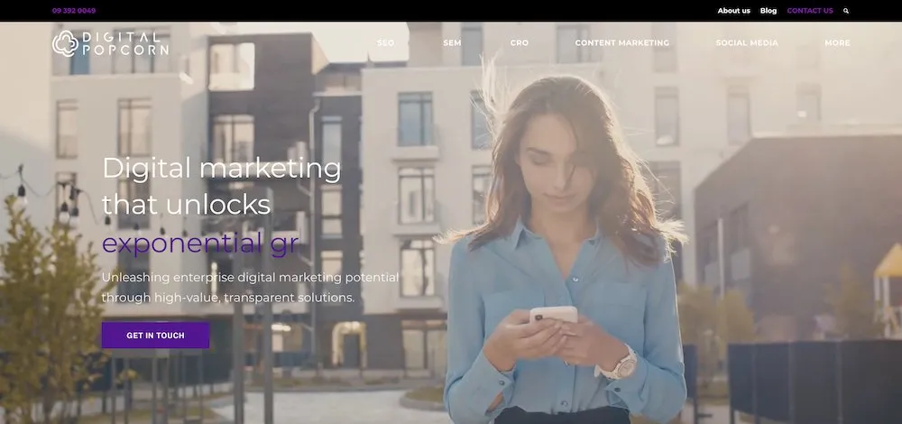 Digital Popcorn es una agencia digital que desbloquea su potencial digital en línea a través de soluciones transparentes y de alto valor. Su oferta de servicios es amplia: desde SEO hasta SEM, CRO, marketing de contenidos, redes sociales y más. La empresa se describe a sí misma como una empresa de SEO empresarial y, si bien ofrece otros servicios de marketing, como redes sociales y marketing de contenido, parece que todos encajan como parte de una estrategia de SEO más amplia. Las empresas con las que se ha asociado Digital Popcorn incluyen DATACOM, Mitre 10, RICOH, New Balance y Subaru. Es posible que no sean los más adecuados para usted si es una pequeña empresa, pero si es una empresa, Digital Popcorn es una buena opción para ayudarlo a planificar y ejecutar campañas de marketing digital. La compañía tiene una amplia gama de experiencias, se enfoca en el trabajo colaborativo y promete una comunicación transparente y rápida y campañas flexibles y orientadas a resultados.