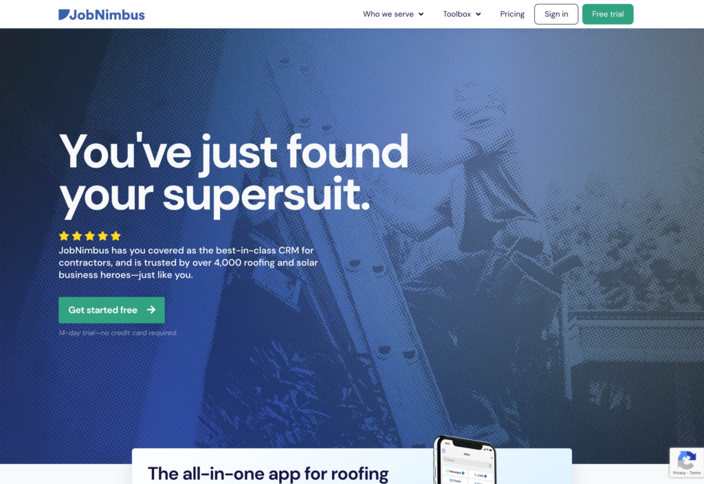 Lo que comenzó como una aplicación para techadores ha crecido para incluir a otros contratistas, como empresas de cuidado del césped. Esta plataforma facilita las operaciones comerciales con informes personalizados para que pueda concentrarse en las relaciones con los clientes, los flujos de trabajo o cualquier otra cosa que sea importante para usted. JobNimbus funciona a través de una nube, por lo que todos pueden acceder a la misma información en el sitio o en la oficina.