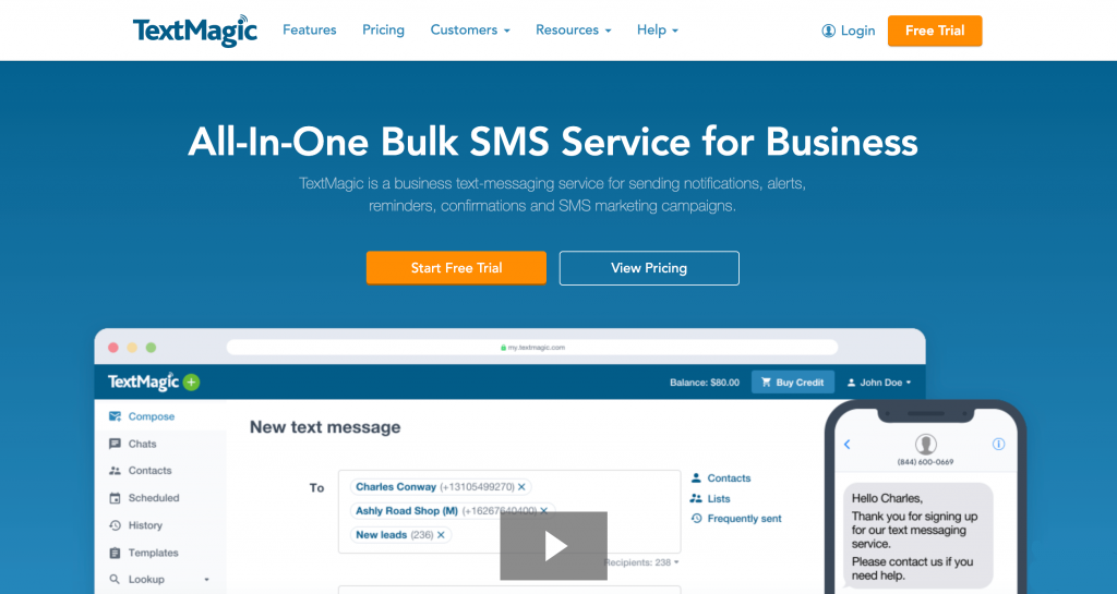 TextMagic es una plataforma de SMS masivos que puede utilizar para enviar mensajes a más de 1000 redes móviles en más de 200 países. También puede crear plantillas para mensajes recurrentes y configurar respuestas automáticas. Esto minimiza la cantidad de trabajo requerido para ejecutar una campaña exitosa.