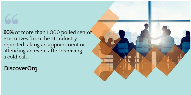 Según un informe de DiscoverOrg, el 60% de más de 1000 altos ejecutivos encuestados de la industria de TI informaron que tomaron una cita o asistieron a un evento después de recibir una llamada en frío. Por lo tanto, las llamadas en frío siguen siendo efectivas y podrían lograr el resultado deseado cuando se hacen de la manera correcta.