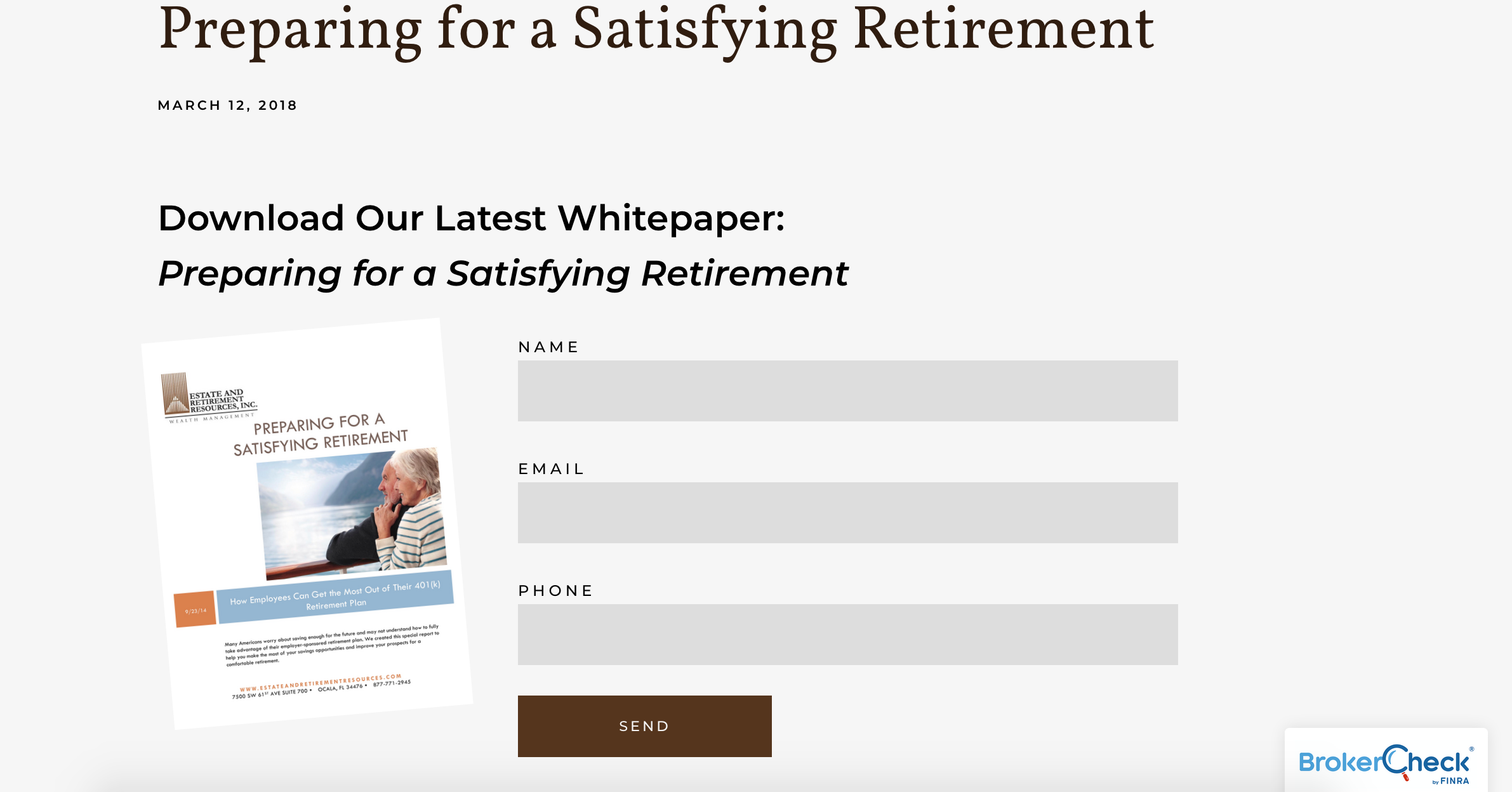 Como puede ver arriba en Twenty Over Ten Client, Estate and Retirement Resources, los libros blancos pueden ser un gran contenido privado. Simplemente ingrese su nombre, correo electrónico y número de teléfono para descargar el documento técnico gratuito, "Preparación para una jubilación satisfactoria".