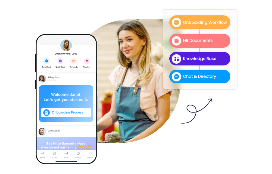 También está el chat seguro en la aplicación que le permite ponerse en contacto con los empleados en tiempo real. Comuníquese uno a uno o cree grupos para conversar sobre cualquier cosa, desde capacitación hasta actualizaciones de horarios, nuevas ideas de menú y todo lo demás.