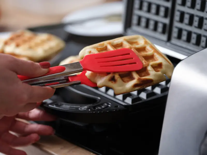 Los carritos de gofres sirven este adorado artículo de desayuno con un toque diferente, a menudo presentando el plato en un palito o en una bandeja de papel para facilitar su transporte.